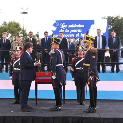 Acto en San Lorenzo: Milei definió al sable corvo como “el símbolo material más poderoso de la Nación”