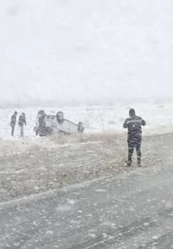 Uno de los hechos más relevantes ocurrió en la zona de El Cerrito, donde un automóvil volcó durante la tarde del domingo debido a las condiciones adversas de la calzada, cubierta de nieve y hielo.