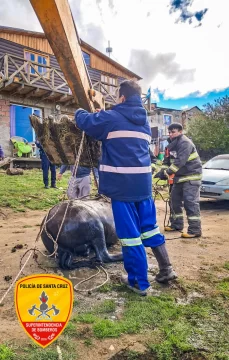 Bomberos de 28 de Noviembre realizaron un intenso operativo que se prolongó durante casi tres horas para salvar a un caballo que cayó de manera accidental en una fosa ubicada en la zona de chacras.