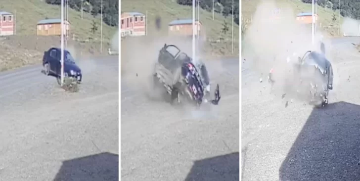 En el video que comenzó a circular en las últimas horas, se observa el momento exacto en que el automóvil derrapa sobre la calzada, pierde estabilidad y termina impactando de costado contra el poste de alumbrado público, provocando que la estructura del vehículo colapse y se parta en dos.