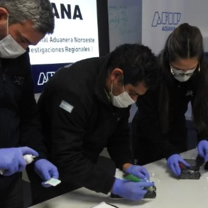 Con la anuencia del Juzgado Federal de Garantías de Salta y la Fiscalía Federal de Delitos Complejos, se procedió a la apertura de las encomiendas, donde se encontraron 6 ladrillos de cocaína con un peso total de 6,548 kilogramos, cuyo valor estimado asciende a $82.800.000.