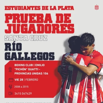Estudiantes de La Plata realizará una prueba de jugadores en la ciudad de Río Gallegos, brindando una gran oportunidad a los jóvenes futbolistas de la provincia. La captación se llevará a cabo el viernes 28 de febrero en la cancha Emilio Pichón Guatti del Atlético Boxing Club.