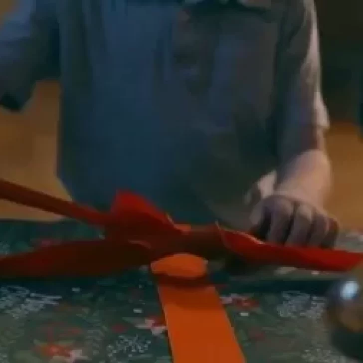 En el video se ve a un niño que baja las escaleras y apoya la cara contra el vidrio y del otro lado está el tradicional árbol navideño lleno de regalos, pero una caja lo asombra particularmente por su tamaño.