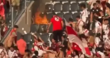 Las llamas obligaron a los hinchas de River Plate a alejarse rápidamente de la zona, ya que el fuego avanzaba sobre varias butacas.