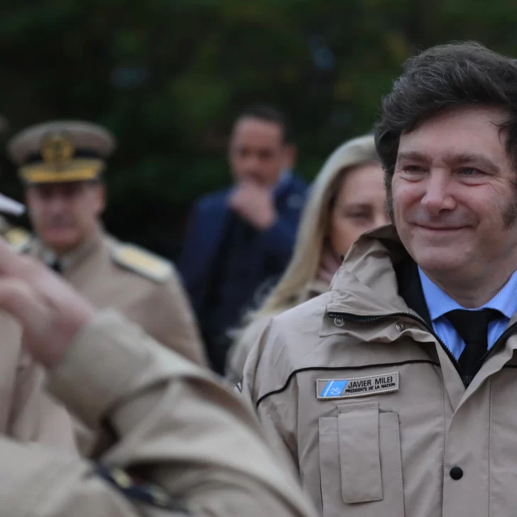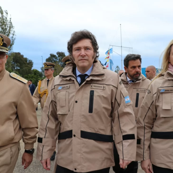 Vestido con ropa militar, el mandatario estuvo acompañado por su hermana y secretaria General de la Presidencia, Karina Milei; y a la ministra de Seguridad, Patricia Bullrich.