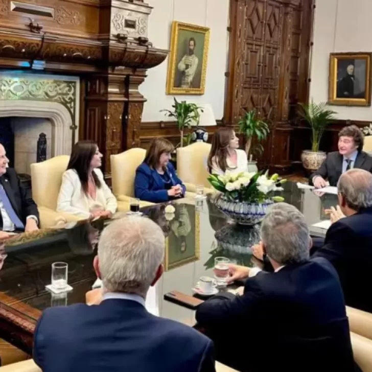 De la reunión -que se inició 8.40 y finalizó minutos antes a las 10, en el Salón Eva Perón– participaron el jefe de Gabinete, Nicolás Posse; la secretaria general de la Presidencia, Karina Milei; y los ministros de Salud, Mario Russo; de Economía, Luis Caputo; de Defensa, Luis Petri; de Seguridad, Patricia Bullrich; de Justicia, Mariano Cúneo Libarona, y la canciller Diana Mondino.