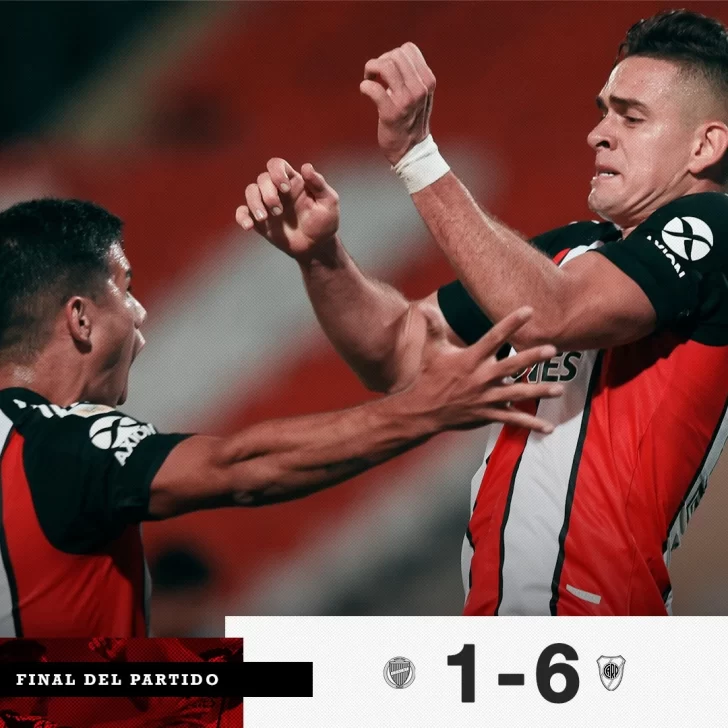 River Plate tuvo una noche extraordinaria y aplastó este sábado a Godoy Cruz, al golearlo 6 a 1 en el estadio Malvinas Argentinas, de Mendoza, en encuentro de la sexta fecha de la zona 1 de la Copa de la Liga Profesional de Fútbol.