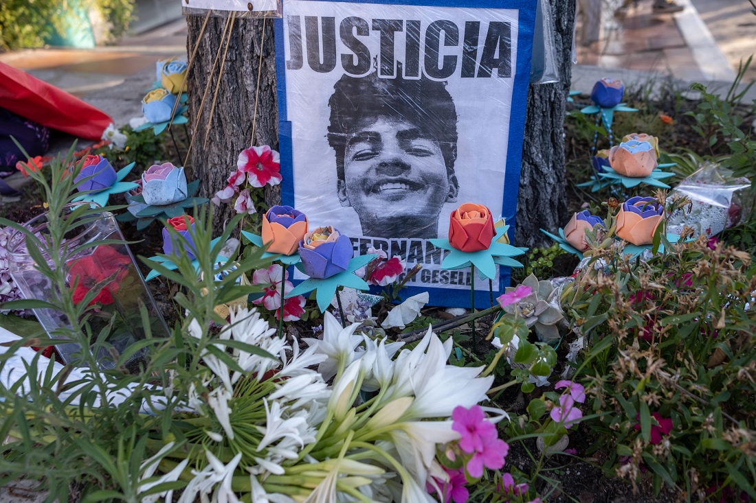 A pocos pasos del sitio en el que Fernando Báez Sosa fue asesinado un año atrás en Villa Gesell, vecinos y turistas se concentraron en la tarde de este lunes para pedir justicia por el crimen, y depositaron rosarios, collares de caracoles, flores, fotos y mensajes en memoria del joven en el santuario creado junto un árbol del lugar.