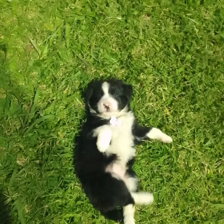 Mientras la acaricia, muestra una vez más la chapita con su nombre. Ludmila sonríe a la cámara. Alma se pone mimosa y se recuesta sobre sus brazos.