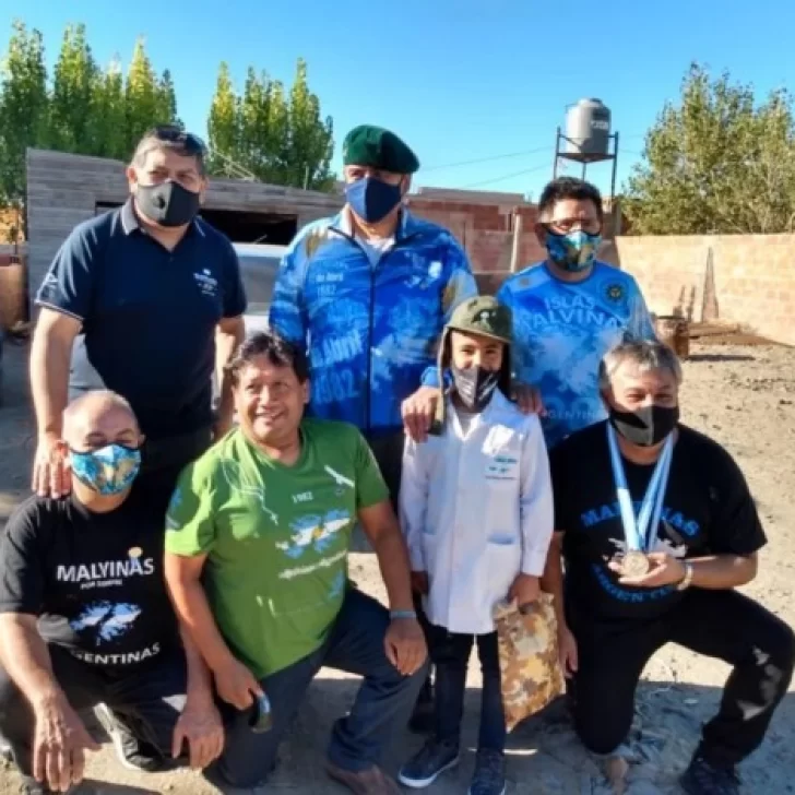 Thiago también recibió la visita de los veteranos de Malvinas en su casa.