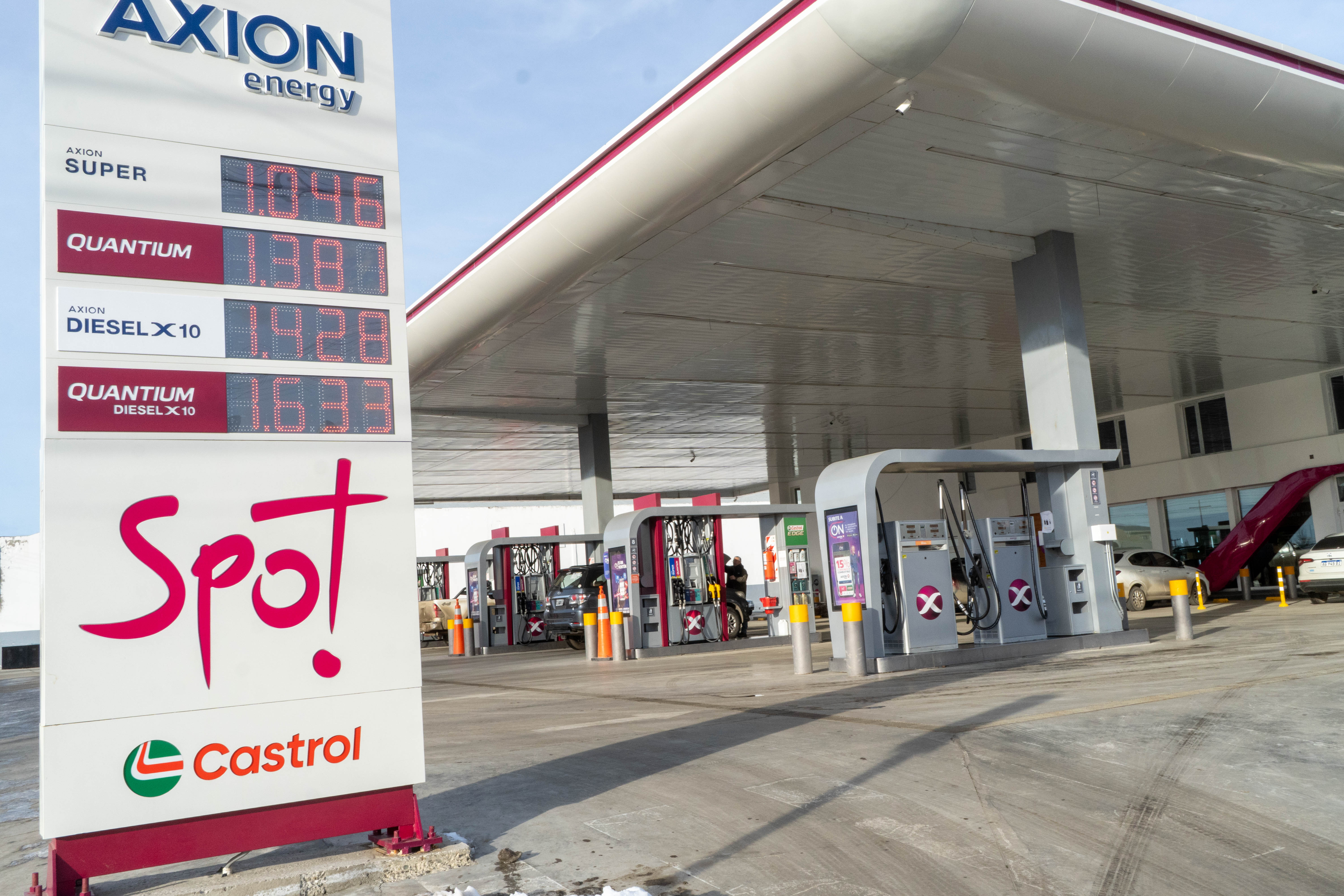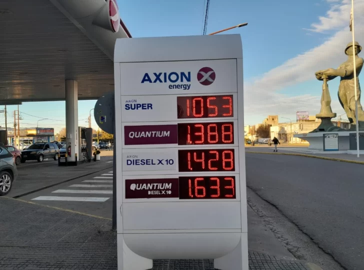 en las estaciones de servicio Axion de la ciudad de El Gorosito la nafta Súper pasó a costar $1.053. En el caso de la nafta Quantium ahora se encuentra en $1.388. Mientras que la Diesel está $1.428 y la Quantium Diesel $1.633, en estos últimos dos casos, igual que en Río Gallegos.