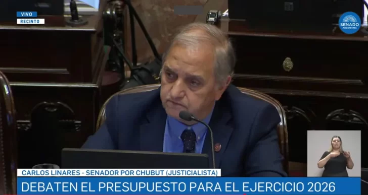 El senador justicialista por la provincia de Chubut, Carlos Linares fue uno de los legisladores que tomó la palabra para referirse al Presupuesto 2026 que se debate en el Congreso de la Nación y que viene con media sanción de la Cámara Baja.