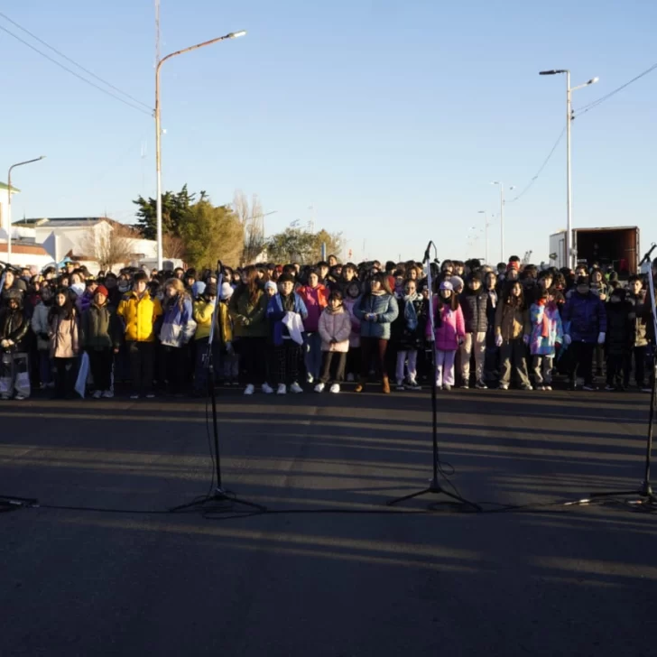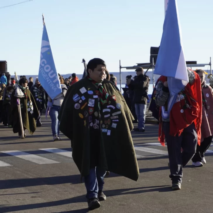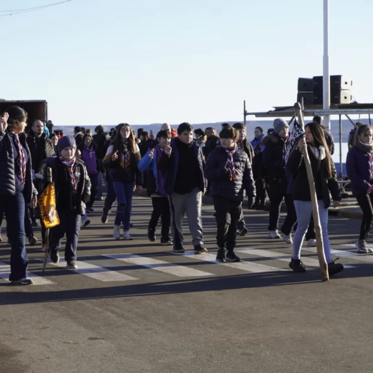 La jornada se inició este sábado con el izamiento de la bandera en la Plaza de la República en la costanera de Río Gallegos, en donde la organización ya estaba repartiendo chocolate caliente y tortafritas.