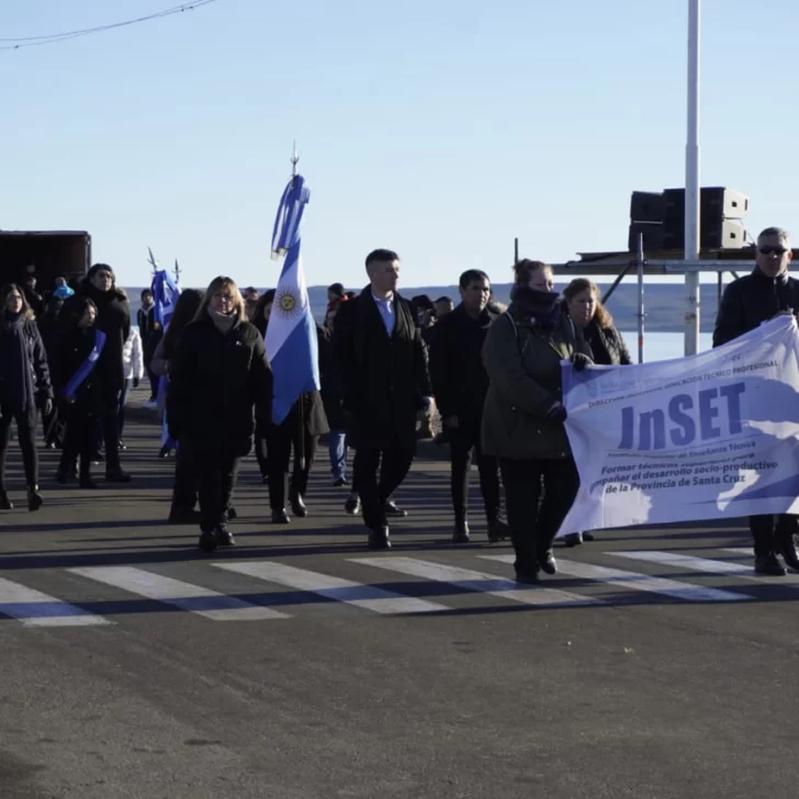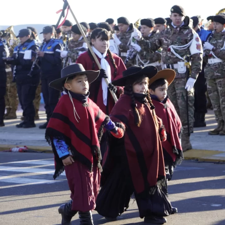 Las escuelas de la ciudad de Río Gallegos tomaron luego el protagonismo, llenando las calles de alegría y entusiasmo con sus bandas de música, sus banderas y sus atuendos tradicionales. Los más pequeños, con sus rostros sonrientes y llenos de orgullo, representaron el futuro de la nación.