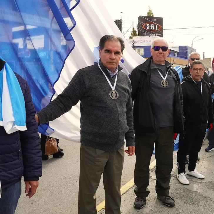 Los veteranos, que por primera vez participaban en el tradicional acto riogalleguense, fueron invitados a izar la insignia patria.