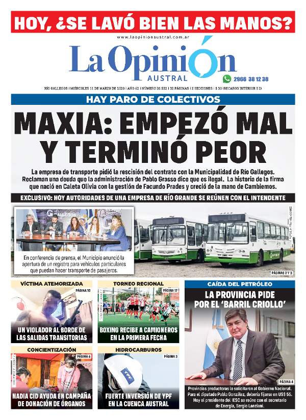 La tapa de La Opinión Austral del año 2020 ya comenzaba a realizar la pregunta más realizada durante el comienzo de la pandemia. Las fotos de los acontecimientos del 10 de marzo todavía mostraban rostros sin barbijos.