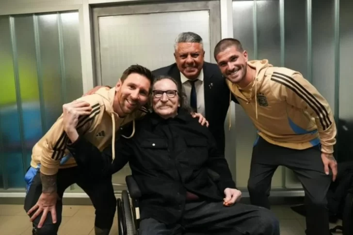 Tras el encuentro, se produjo un momento inolvidable: Charly García visitó el vestuario de la Selección Argentina, donde se tomó fotos con Messi, Rodrigo De Paul, Alexis Mac Allister y Claudio “Chiqui” Tapia.