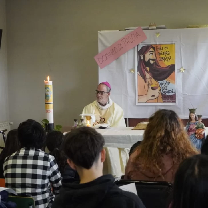 En un tono didáctico y participativo, el titular de la Diócesis de Río Gallegos dialogó con los jóvenes feligreses y explicó la relevancia del Domingo de Resurrección para la fe católica.