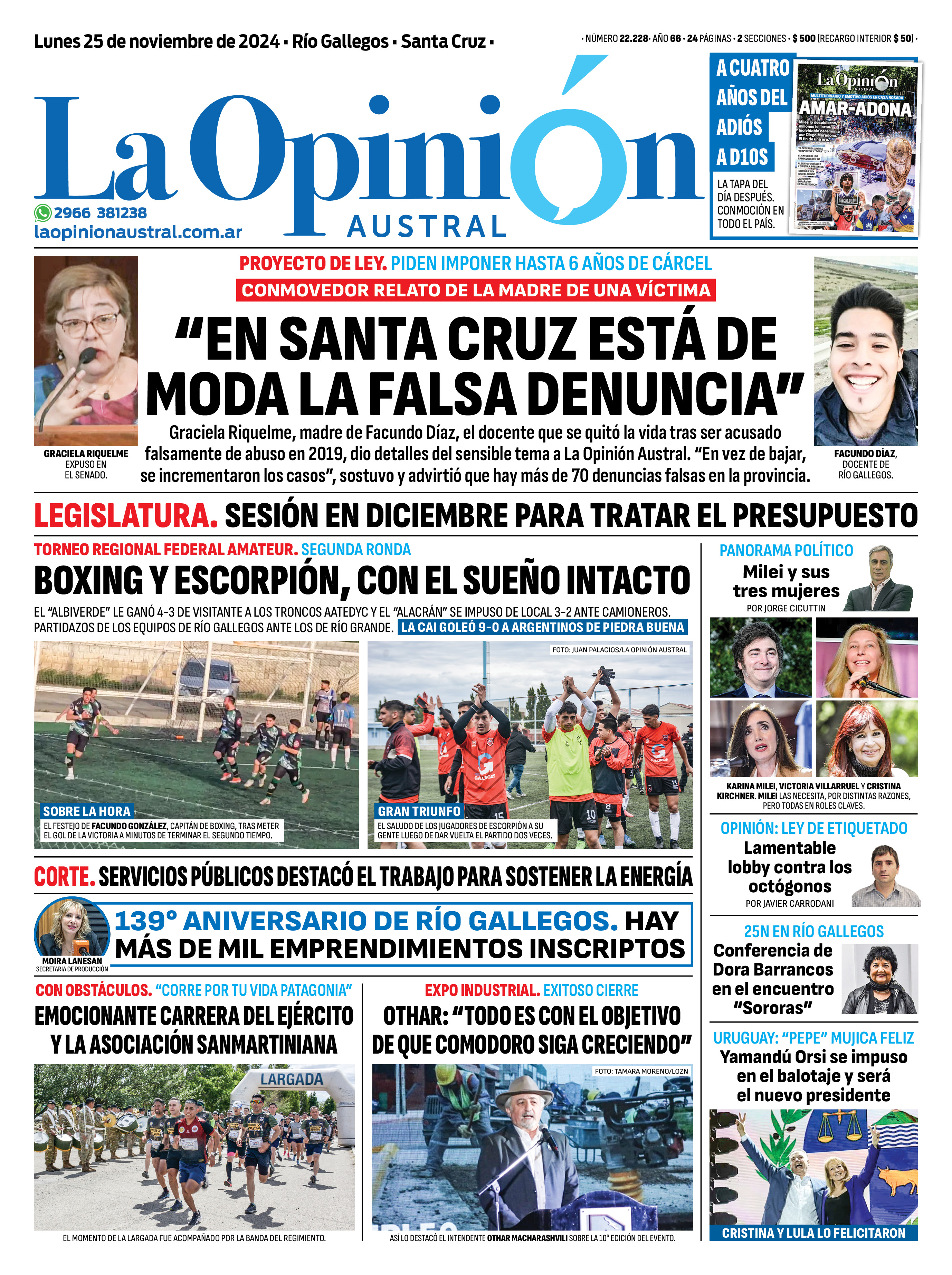 Cabe recordar que durante la exposición en el Senado se pudo escuchar el testimonio de Graciela Riquelme, mamá de Facundo Díaz -el docente de Río Gallegos que se quitó la vida tras haber sido denunciado falsamente-. El proyecto sería tratado en la agenda legislativa de 2025.