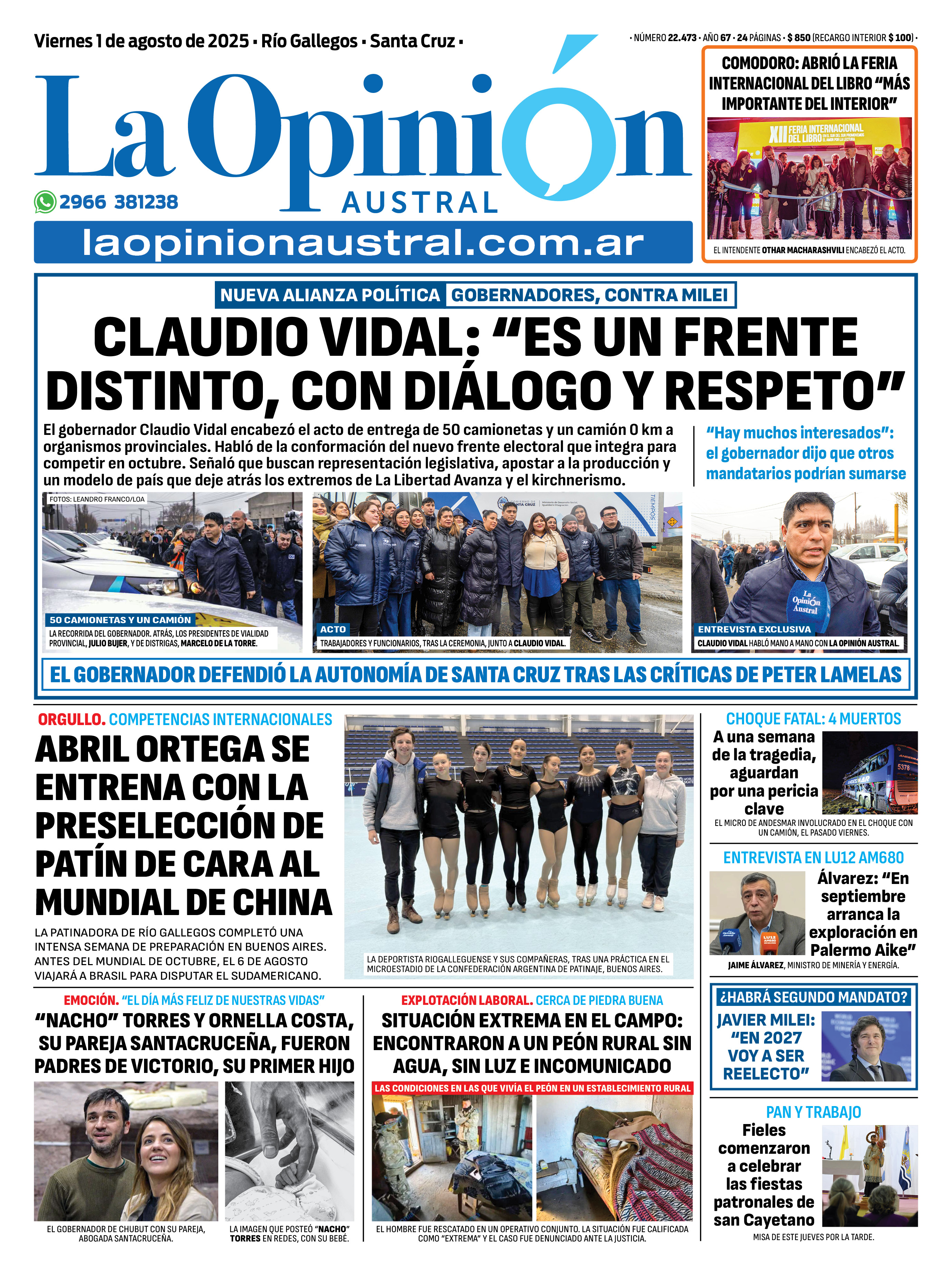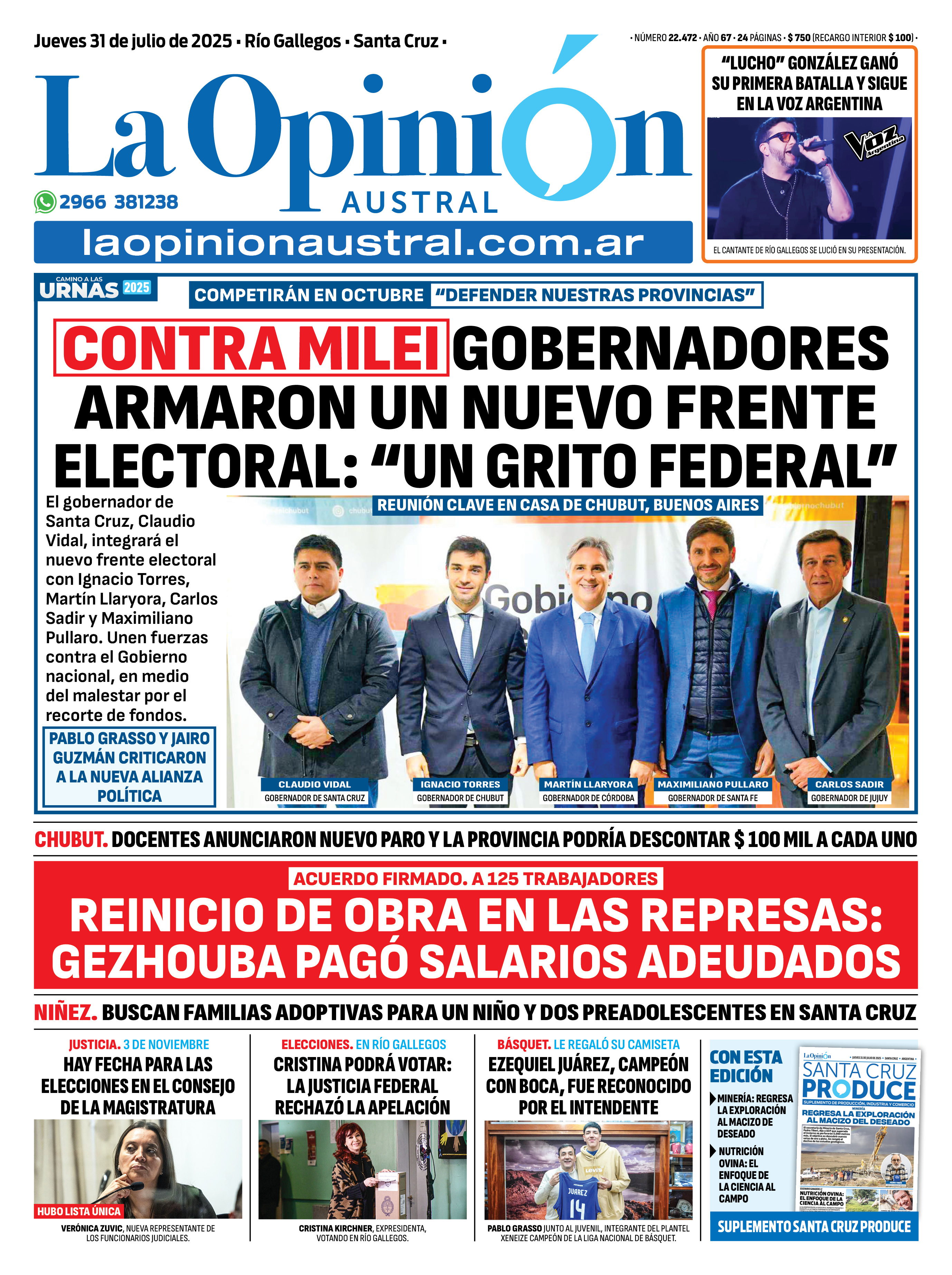 En paralelo, el gobernador de Santa Cruz, Claudio Vidal, había señalado que el frente “Un grito federal” no solo ya está consolidado, sino que podría ampliarse. En declaraciones exclusivas a La Opinión Austral, afirmó: “Es muy probable, hay muchos interesados. Este es un frente electoral distinto que apuesta al diálogo, al respeto y, por sobre todas las cosas, a fortalecer un esquema de producción y trabajo a nivel nacional”.