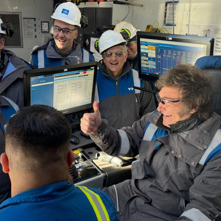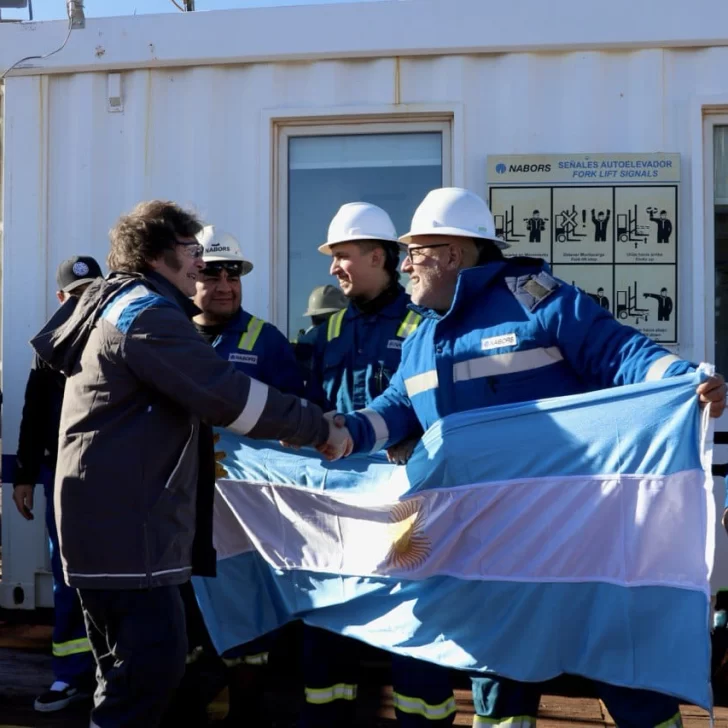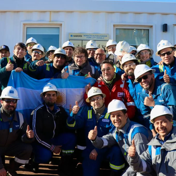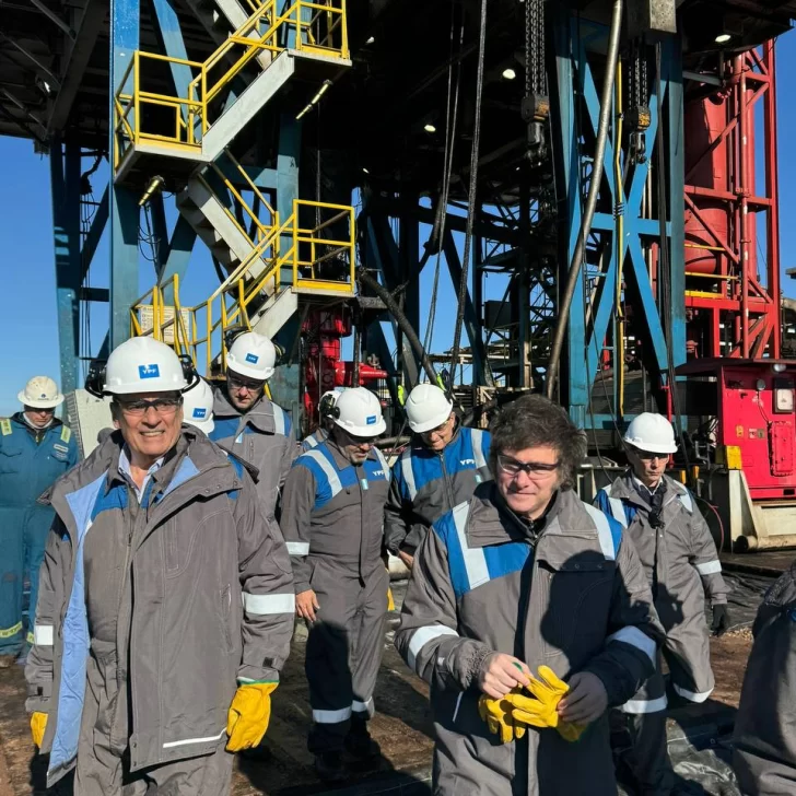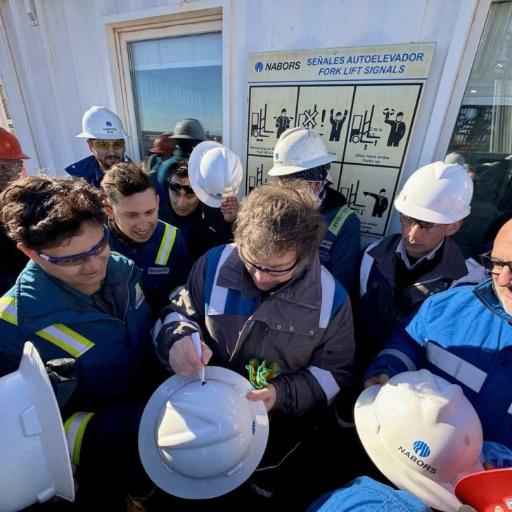 La Oficina del Presidente también divulgó una fotografía en la que Milei aparece junto a trabajadores del equipo de perforación NB 1211, quienes han sido beneficiados por la reversión del Impuesto a las Ganancias en conceptos específicos de la explotación petrolera, tal como lo establece la ley 27743 del paquete fiscal.