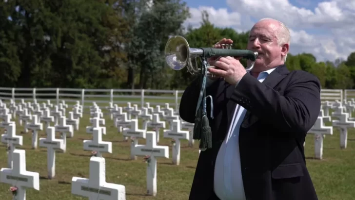 Acompañado de su trompeta, el músico tocó el minuto de silencio reemplazando así a las gaitas que acompañaba estas ceremonias hasta ese momento y poniéndole sonido a la historia de la guerra y sus héroes.