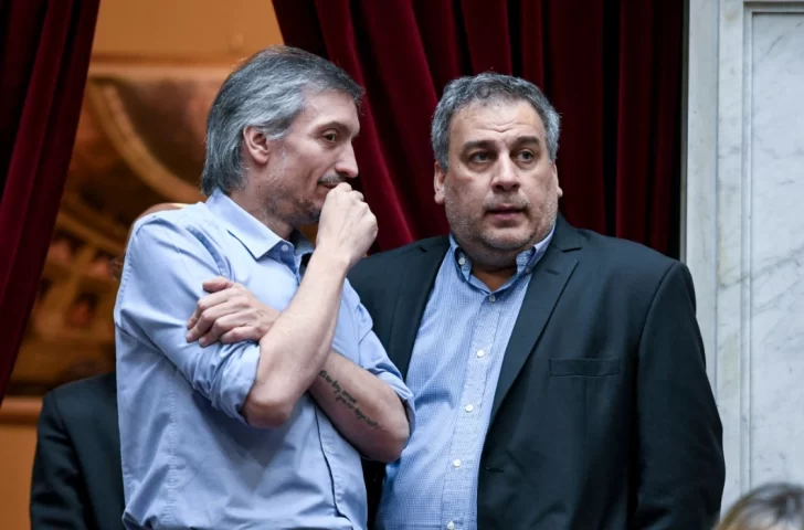 Una imagen importante de la sesión especial de la Cámara de Diputados de la Nación fue la del reencuentro entre el diputado nacional Máximo Kirchner (Fuerza Patria) y el legislador nacional Facundo Prades (Provincias Unidas Por Santa Cruz).