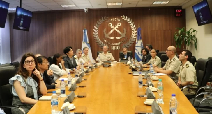 El Director de Tráfico Marítimo, Fluvial y Lacustre de la Prefectura Naval Argentina, prefecto general Néstor Kiferling, recibió una delegación integrada por el embajador Javier Figueroa, Coordinador de Políticas Oceánicas y del Atlántico Sur; el abogado Arturo Idoyaga Molina, Director Nacional de Coordinación y Fiscalización Pesquera; y representantes diplomáticos de las embajadas de la República Popular China, República de Corea, España, Portugal y la República Oriental del Uruguay.