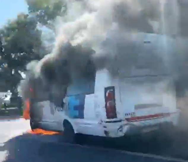 Un micro de la Policía de la Provincia de Buenos Aires se incendió en la autopista Ricchieri mientras se dirigía hacia la Capital Federal.