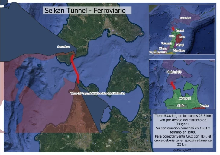 Sin embargo, Battaglia puso como ejemplo “comparable“, el túnel Seikan, uno de los túneles submarinos más largos del mundo. Y en un ambiente con desafíos similares (clima, tormentas, terremotos).