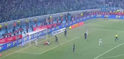 A los dos minutos del inicio del partido, Lionel Messi llegó rápidamente al arco rival y le dio un pase a Lautaro Martínez para que anote el primer tanto del partido. Sin embargo, el delantero la pisó, resbaló y perdió la oportunidad.