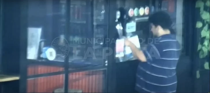 El hecho se produjo en el bar “Piba”, ubicado en diagonal 74 y 10. Desde el sistema de monitoreo avisaron a efectivos de la Policía de los daños que había provocado en el lugar un joven robusto, vestido con una chomba y bermudas.