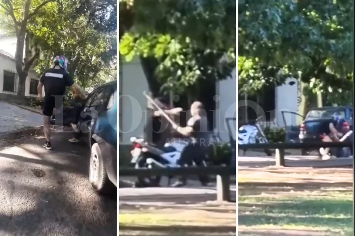 En las imágenes se escucha al motociclista recriminarle al automovilista por los daños en la moto. Luego, el conductor del Corsa desciende del vehículo con un palo y golpea al joven en el brazo y en la zona del cuello. Acto seguido, el motociclista responde a golpes de puño. Segundos después, el hombre mayor cae al asfalto y no vuelve a incorporarse.
