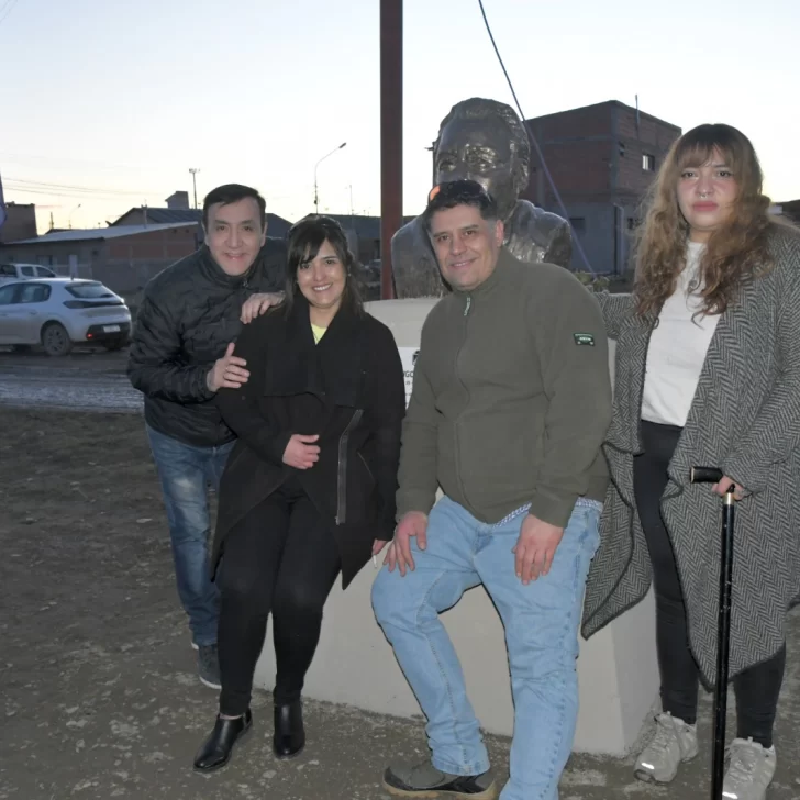 El acto fue encabezado por el intendente Pablo Grasso, acompañado del gabinete municipal y contó con la presencia de Ana Giménez y Martín González, dos de los cuatro hijos del cantor de la Patagonia, quienes descubrieron el busto que se inauguró en el espacio recreativo.