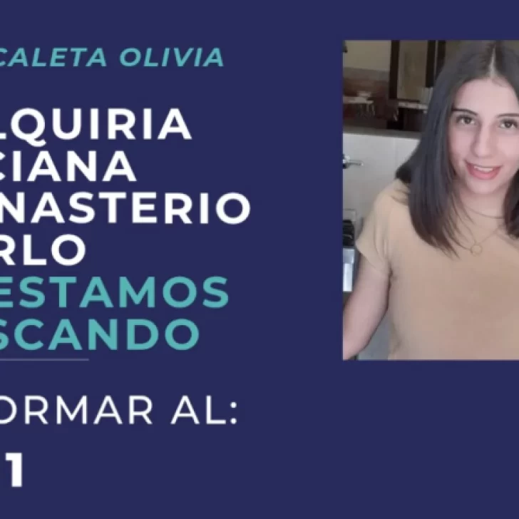 La Policía de Santa Cruz solicita la colaboración de la comunidad para dar con el paradero de Luciana Monasterio Merlo, de 19 años, desaparecida en Caleta Olivia.