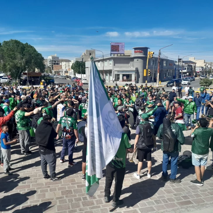Este miércoles, los trabajadores del transporte encabezan una masiva movilización en El Gorosito de la ciudad de Caleta Olivia. Junto a ellos, estuvieron sindicatos de diversos sectores como la educación, salud, universitarios, estatales, además de agrupaciones políticas y sociales.