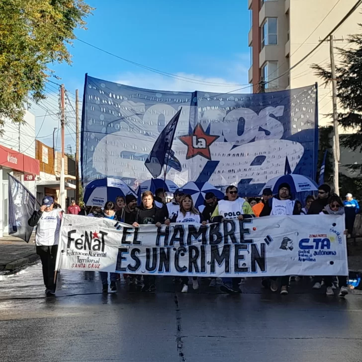 La Central de Trabajadores Caleta Olivia, se movilizó por calles céntricas junto a otras organizaciones este 9 de mayo, en el marco del paro nacional convocado por la CGT.