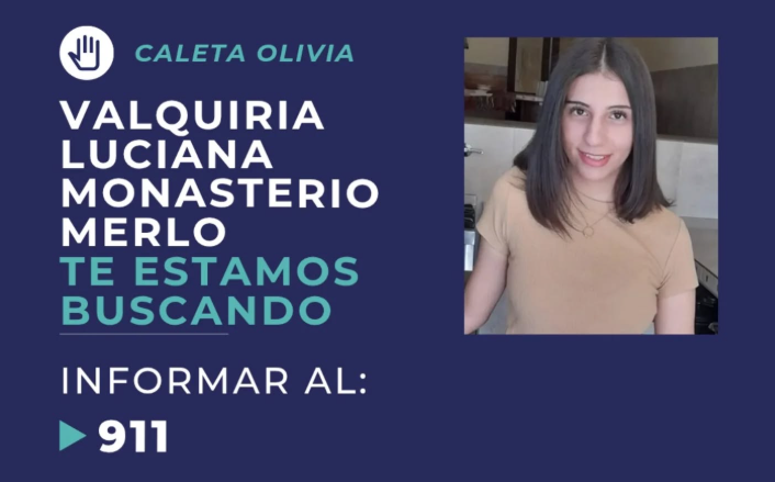 La Policía de Santa Cruz solicita la colaboración de la comunidad para dar con el paradero de Luciana Monasterio Merlo, de 19 años, desaparecida en Caleta Olivia.