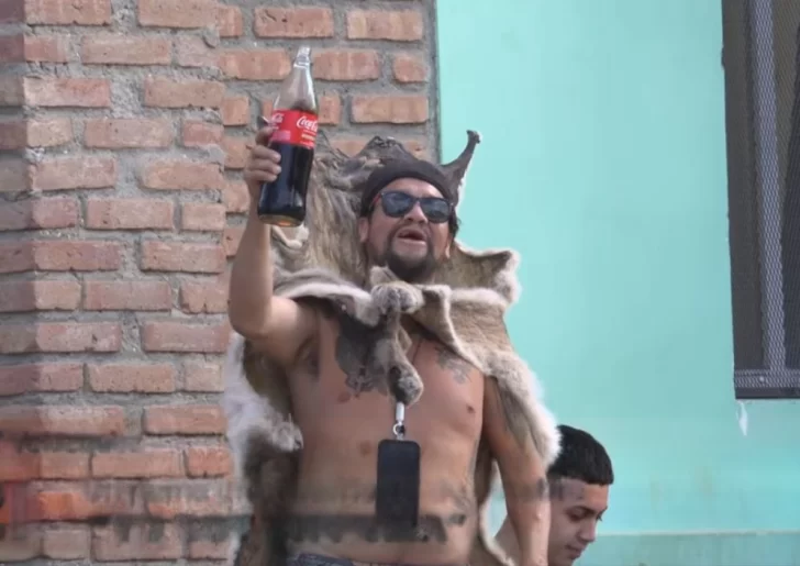 En medio del despliegue policial, otro hecho llamó la atención de quienes se encontraban en el lugar. Un hombre apareció vestido con un cuero de puma sobre la espalda y comenzó a dialogar con vecinos y curiosos.