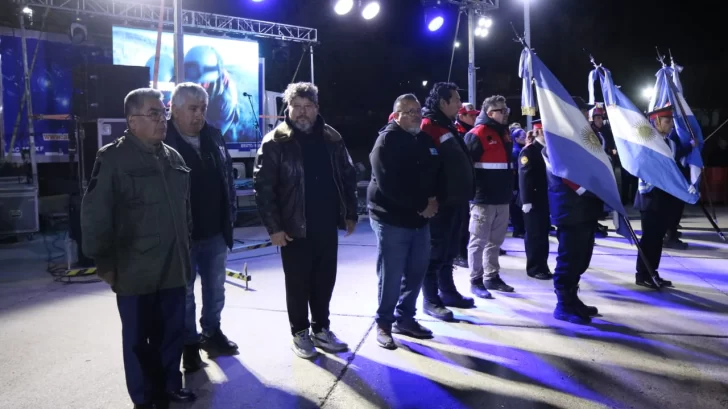 Ya en la medianoche, la ceremonia alcanzó su punto más solemne. Con la presencia de las banderas de ceremonia de la Policía de Santa Cruz, Bomberos Voluntarios y Defensa Civil, se entonaron las estrofas del Himno Nacional Argentino. Posteriormente, la Policía de Santa Cruz realizó las salvas de honor, marcando un cierre cargado de respeto, memoria y profundo reconocimiento con la Marcha de las Malvinas.