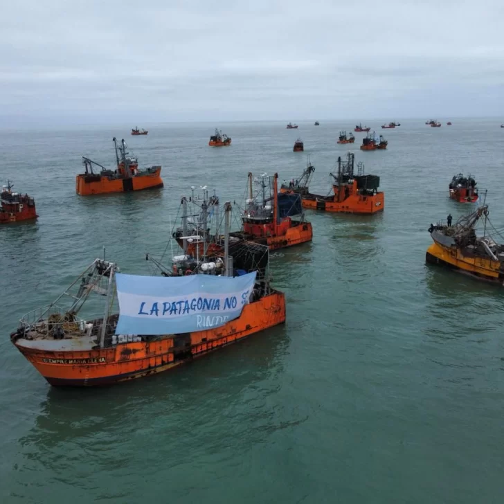 Además, Torres se subió a bordo del buque “Siempre María Elena” y luego de unos minutos volvió a tierra firme. En la misma embarcación se puede ver una bandera argentina con el lema “La Patagonia no se rinde”.