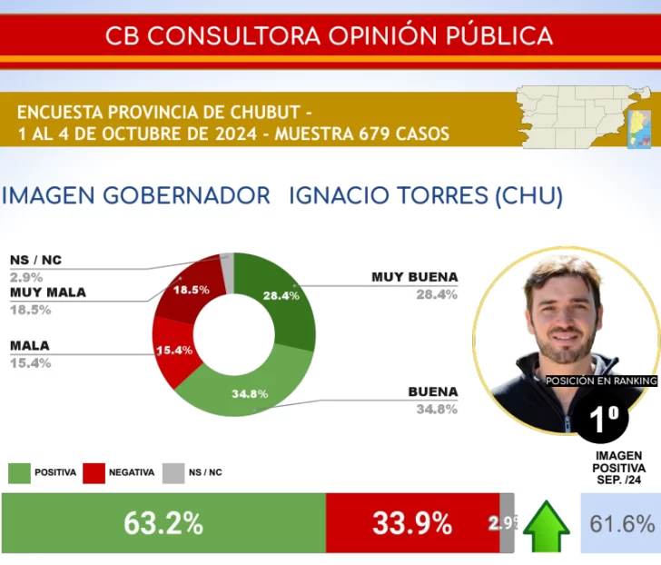 El informe, que toma en cuenta la opinión de los habitantes de cada provincia, refleja la sólida imagen positiva de Torres, quien ha logrado mantenerse a la cabeza en un contexto político desafiante. El 28.4% de los encuestados destacó la imagen del gobernador chubutense como “muy buena”, mientras que el 34.8% la calificó de “buena”.