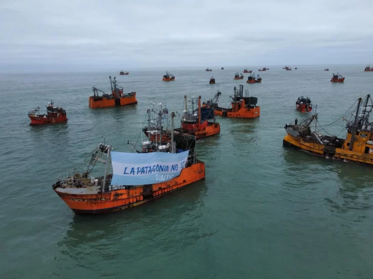 Además, Torres se subió a bordo del buque “Siempre María Elena” y luego de unos minutos volvió a tierra firme. En la misma embarcación se puede ver una bandera argentina con el lema “La Patagonia no se rinde”.