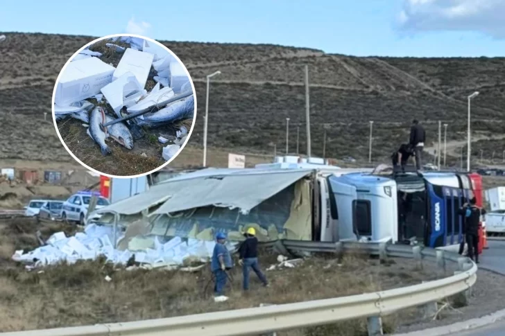 Un camión que transportaba pescado volcó este miércoles por la tarde en la rotonda que conecta las rutas 3 y 26, en cercanías de Rada Tilly y Comodoro Rivadavia, generando caos en el tránsito y un insólito intento de saqueo por parte de vecinos.