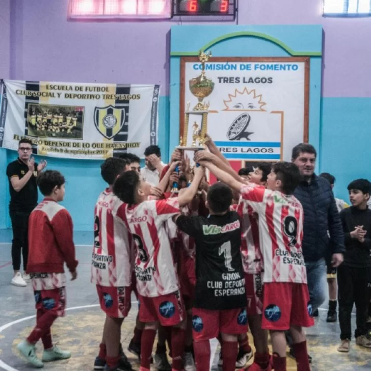 En el gimnasio de la Comisión de Fomento de Tres Lagos se desarrollará un torneo de futsal de carácter regional reservado para las categorías Sub13 y Sub15 durante los días 21 al 24 de mayo, con la participación segura de muchas localidades de la provincia, campeonato que otorgará plazas para el torneo nacional en cada categoría, lo que por supuesto será con notable participación.