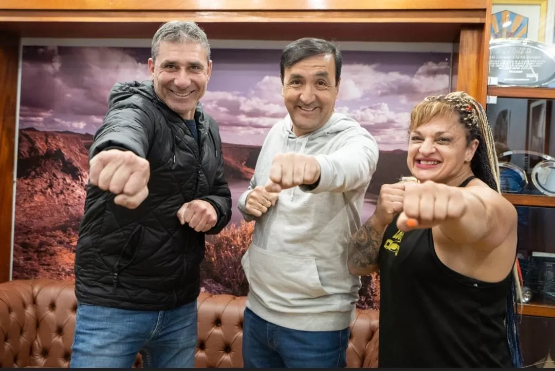 Tras, la conferencia, el “Pato” Abbondanzieri se reunió con el intendente de Río Gallegos, Pablo Grasso y la boxeadora Alejandra Marina “la locomotora” Oliveras que se encuentra en la capital santacruceña para participar del tercer encuentro de “Gallegos emprende”, que se realizará en el Tenis Club de Río Gallegos a las 18:00.