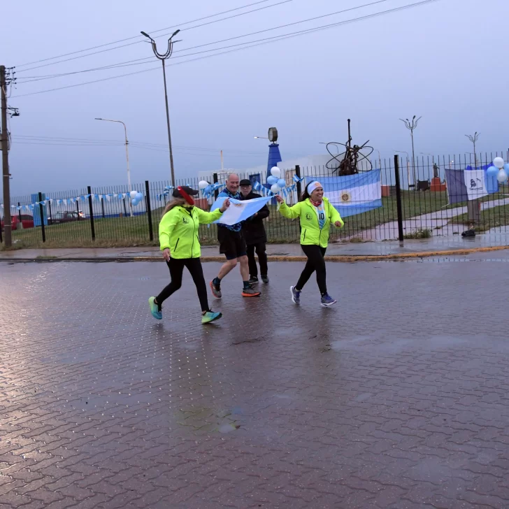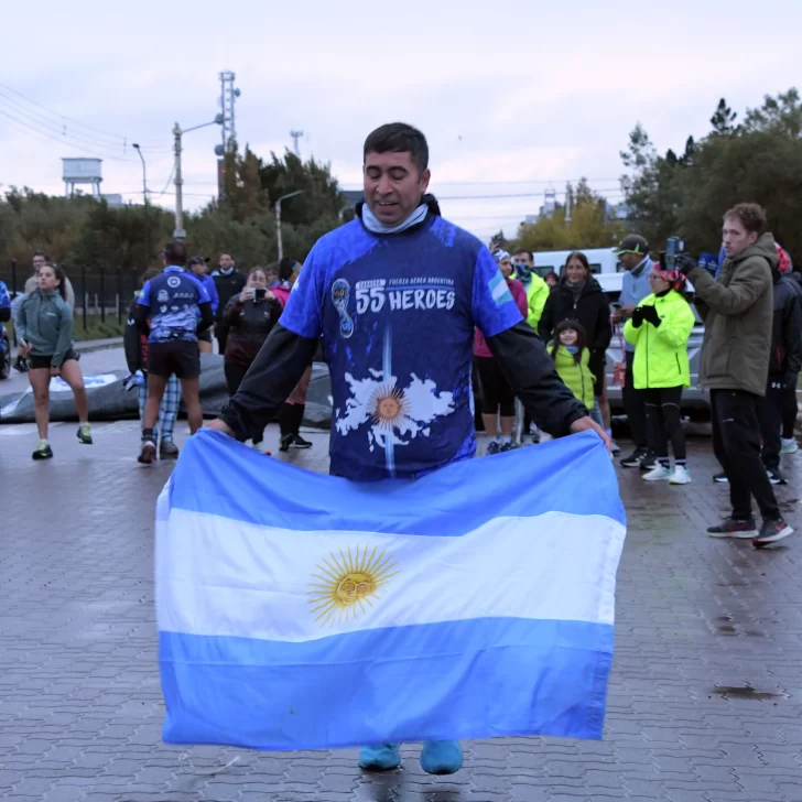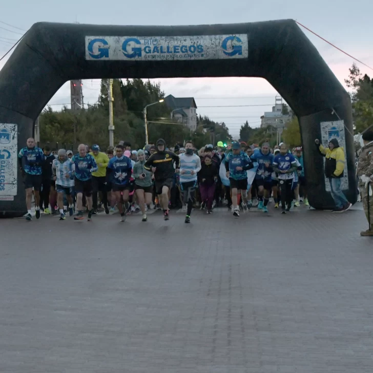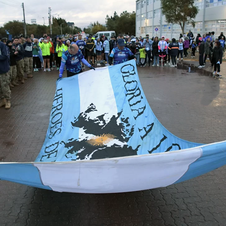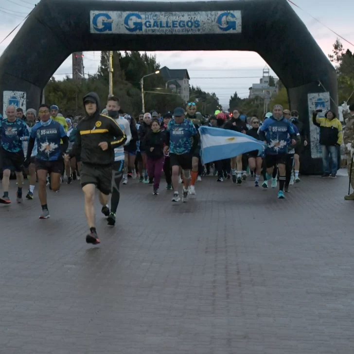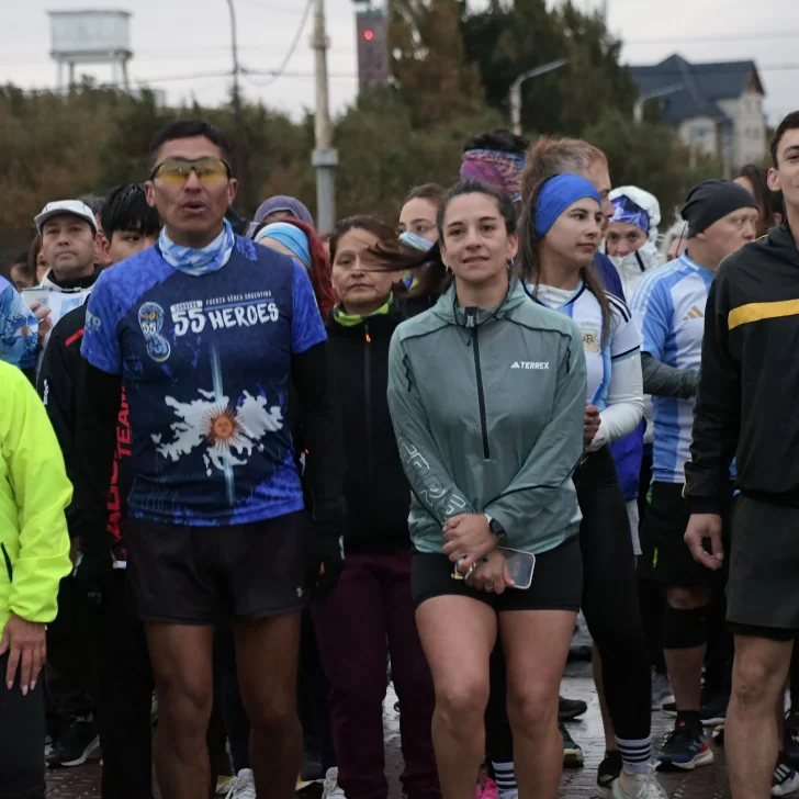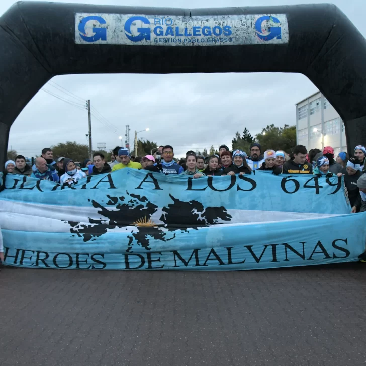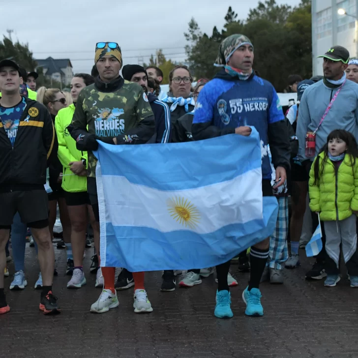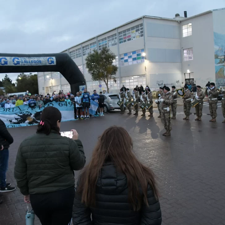 La carrera, que fue acompañada por una buena cantidad de vecinos y vecinas de Río Gallegos, contó con la presencia del ejército argentino y la banda militar que entonó las estrofas del Himno Nacional y de la Marcha de Malvinas.