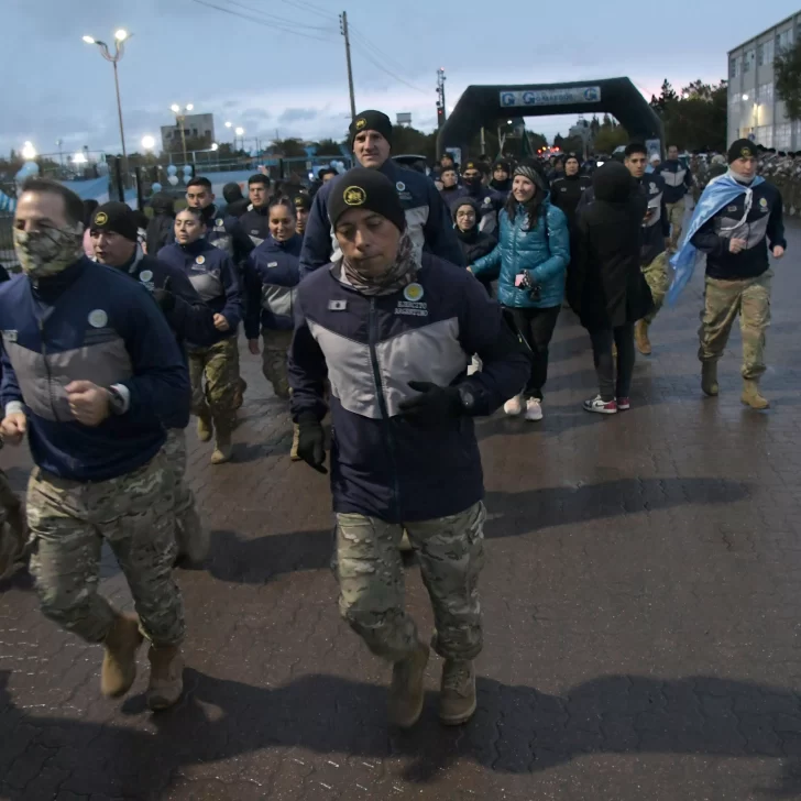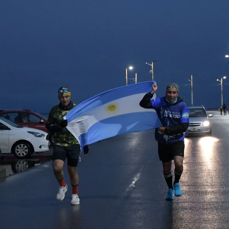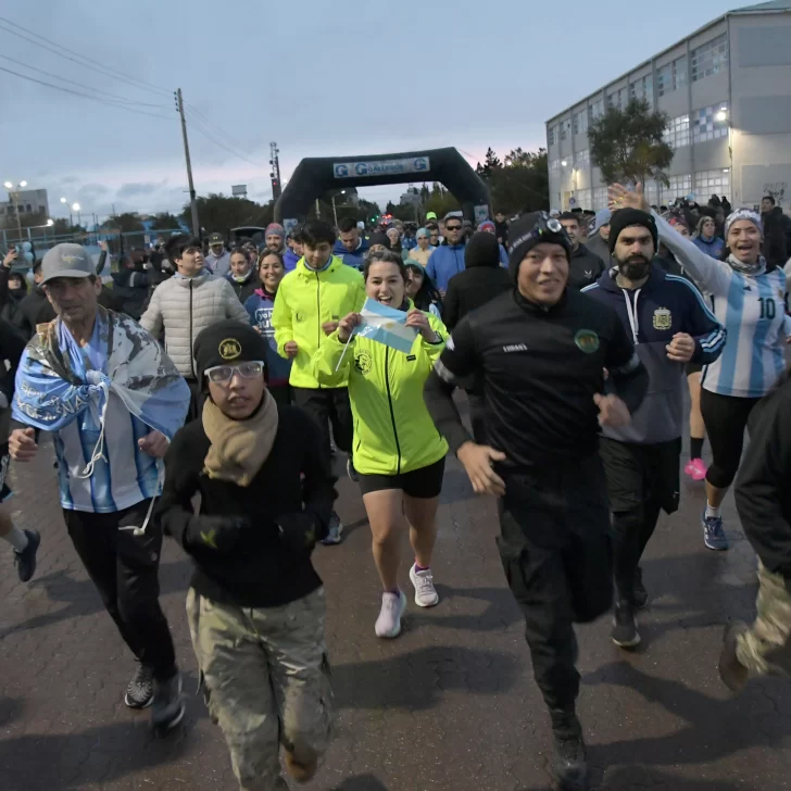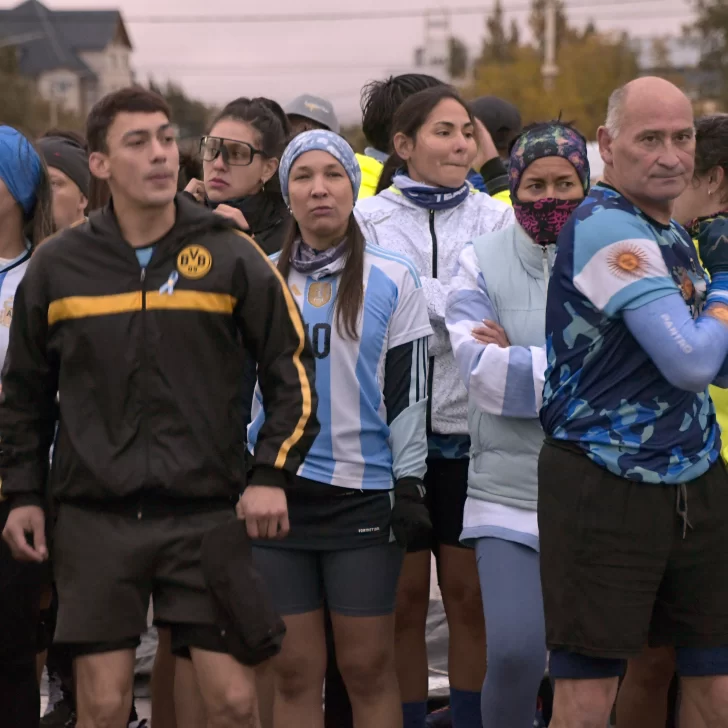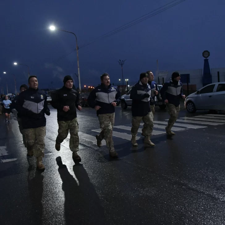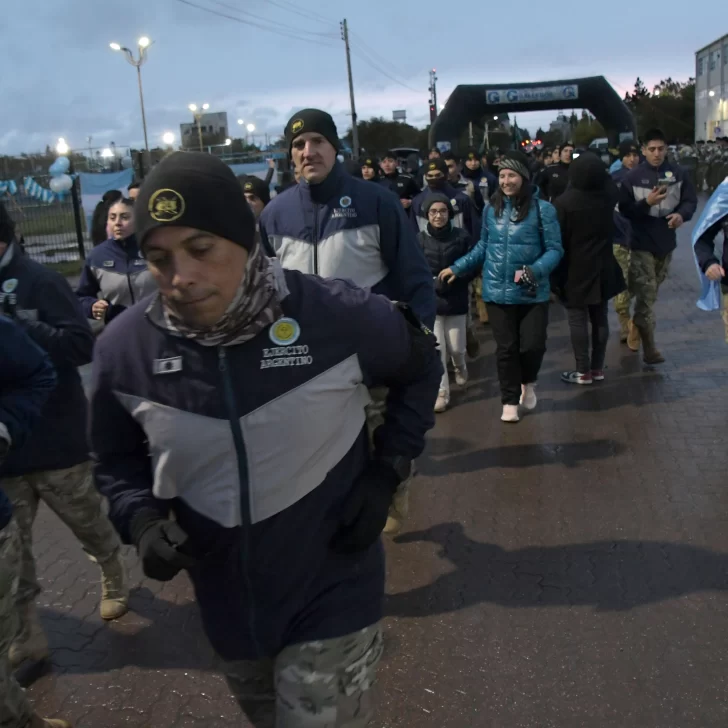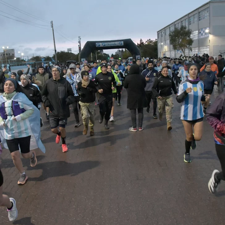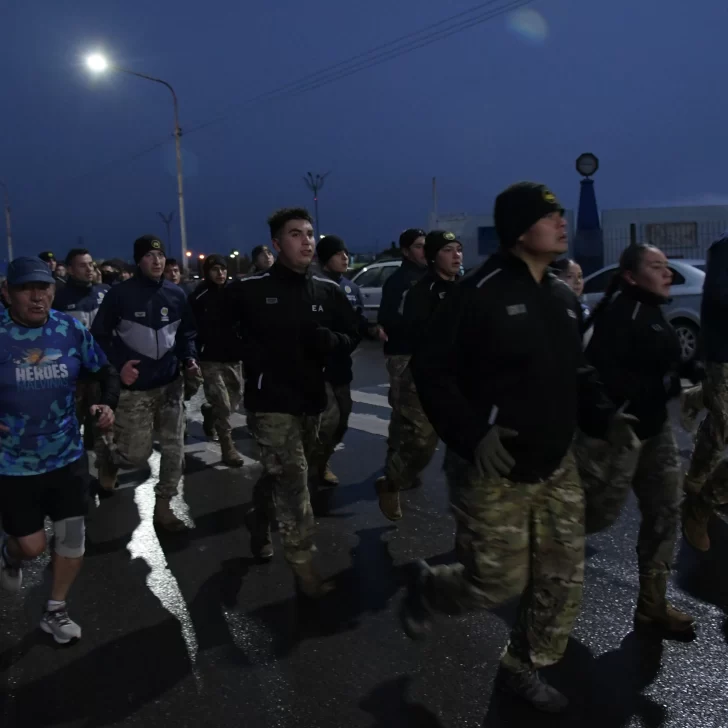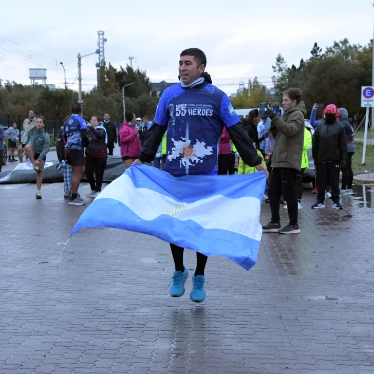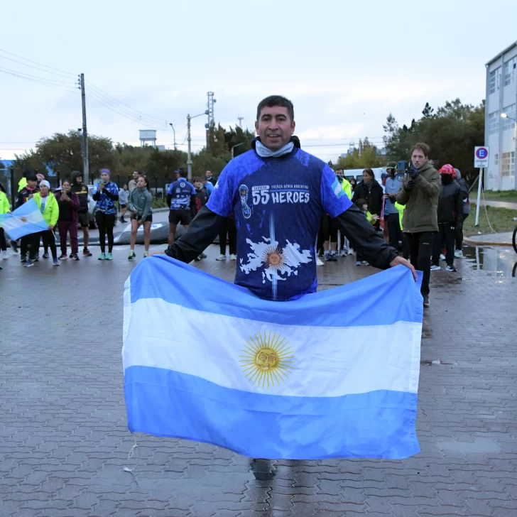 La carrera, que fue acompañada por una buena cantidad de vecinos y vecinas de Río Gallegos, contó con la presencia del ejército argentino y la banda militar que entonó las estrofas del Himno Nacional y de la Marcha de Malvinas.