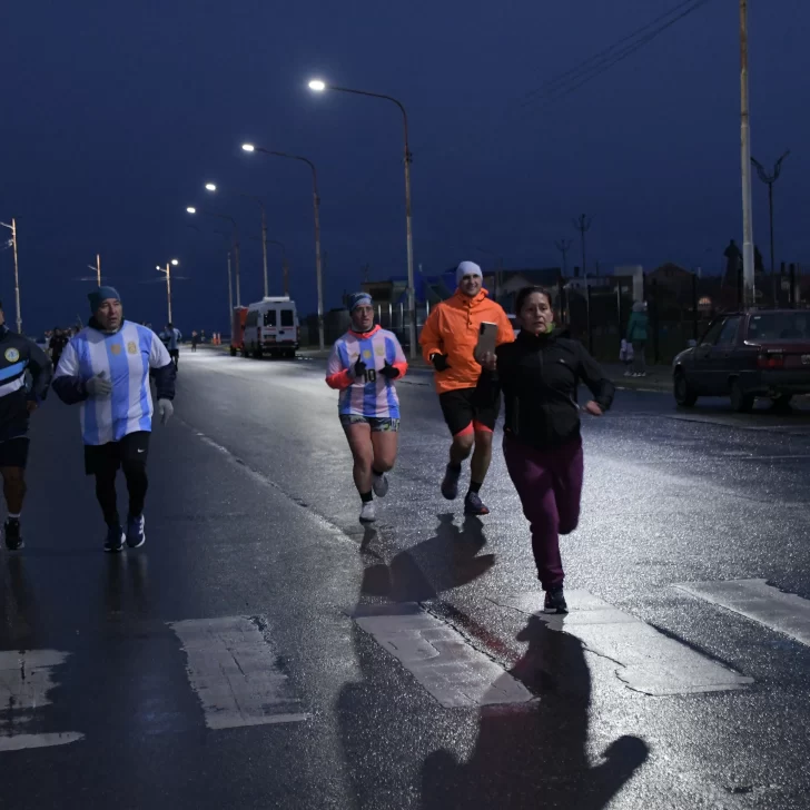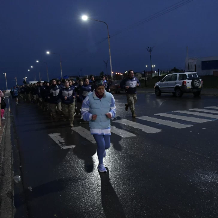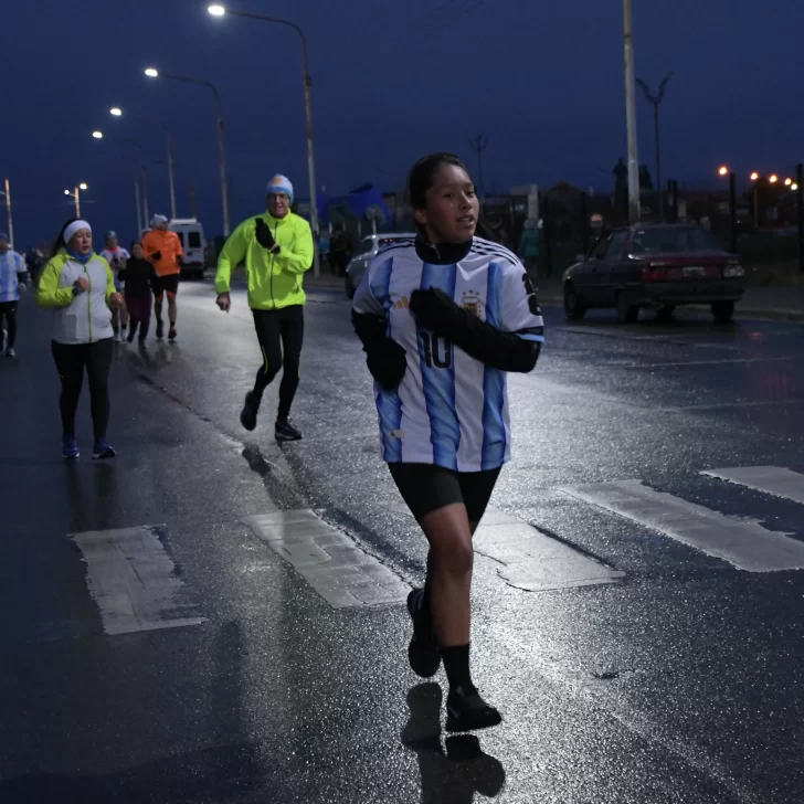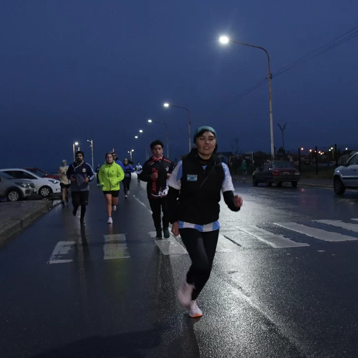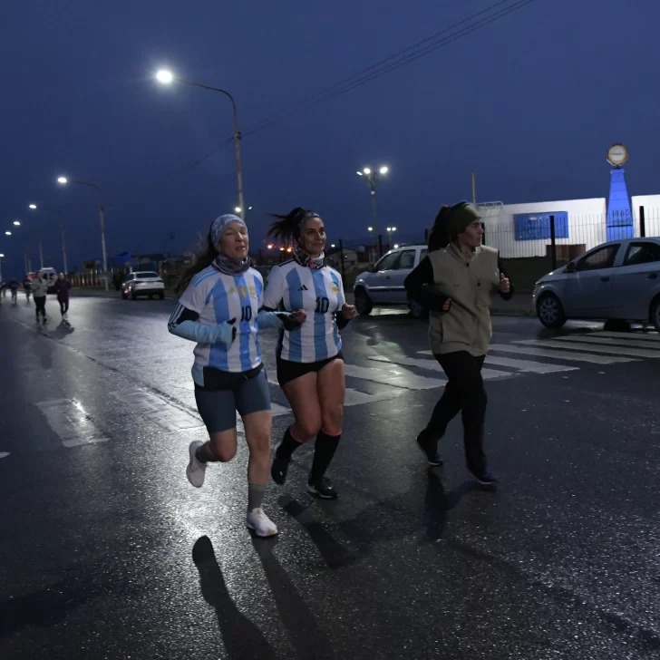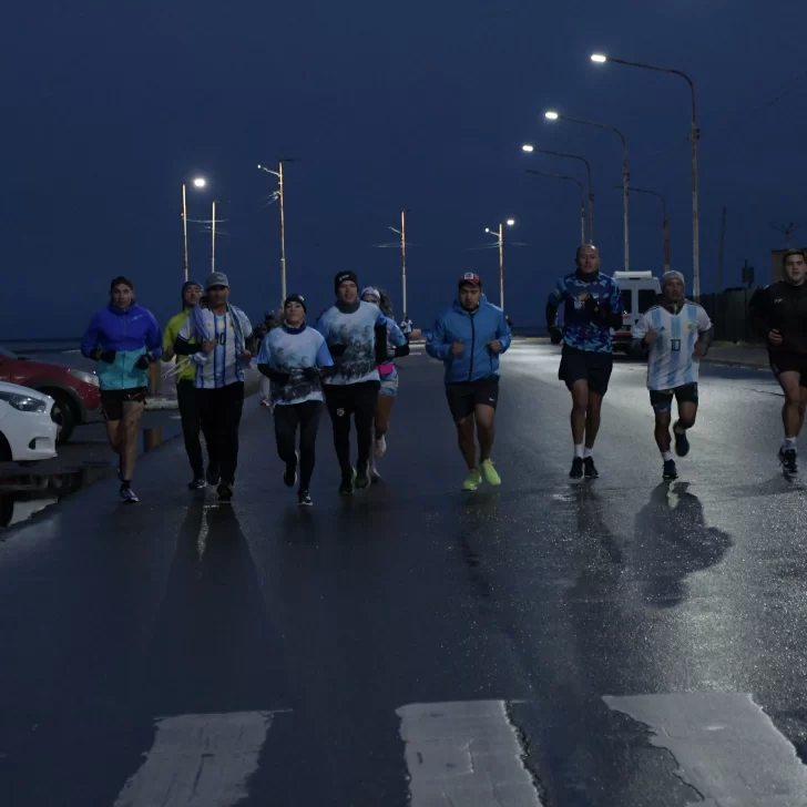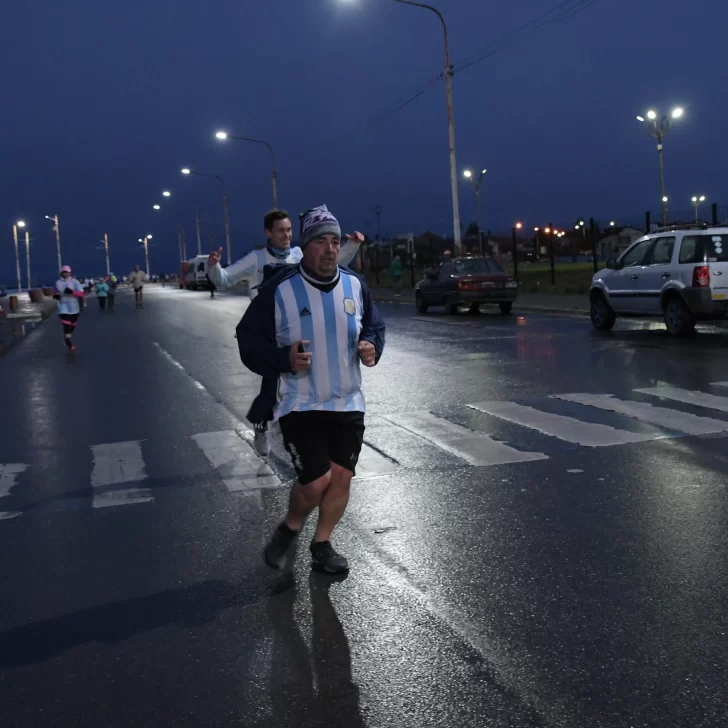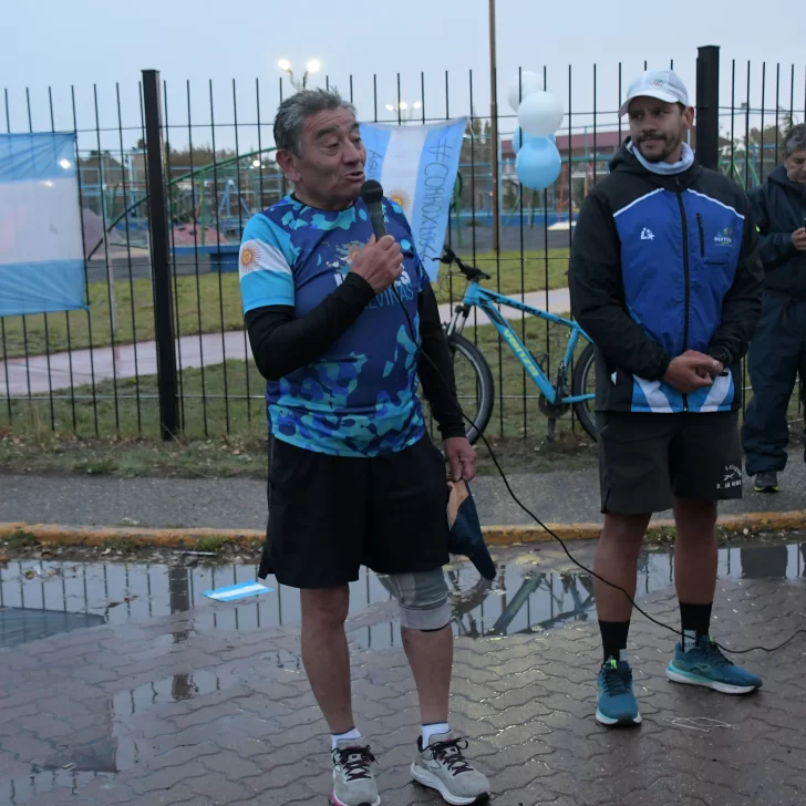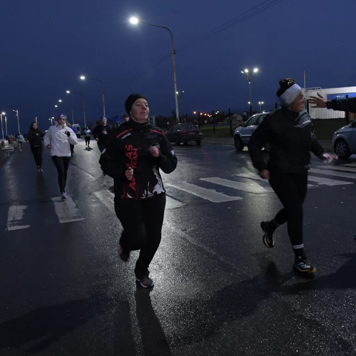 La carrera, que fue acompañada por una buena cantidad de vecinos y vecinas de Río Gallegos, contó con la presencia del ejército argentino y la banda militar que entonó las estrofas del Himno Nacional y de la Marcha de Malvinas.