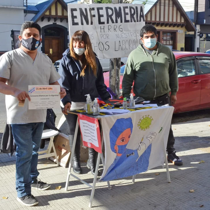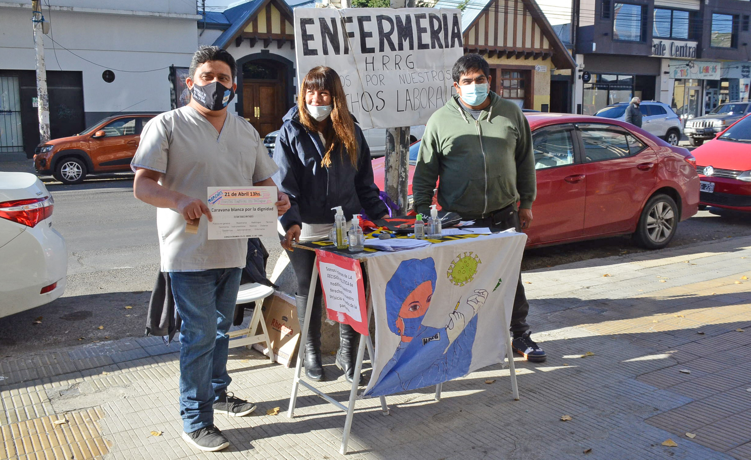 El reclamo de este grupo de trabajadores de la salud del Hospital Regional de Río Gallegos se sostiene hace varias semanas y pese a que hubo varias reuniones para destrabar el conflicto, que comenzó con el pedido de que se sostuvieran las horas extra cuando la cantidad de contagios había bajado, todavía no tiene una salida.